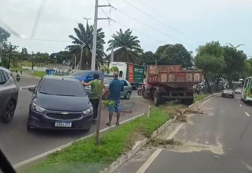 Um acidente envolvendo um caminhão caçamba e um carro de passeio, registrado na manhã desta terça-feira (18), deixou parte de uma via parcialmente bloqueada e o trânsito lento na avenida Coronel Teixeira, bairro Ponta Negra, zona Oeste de Manaus.