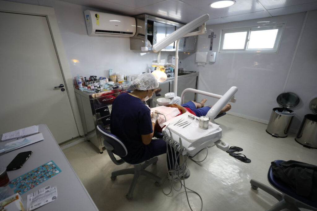 A embarcação também dispõe de espaço para duas ambulanchas que dão apoio nas expedições, além de possíveis encaminhamentos de urgência para alta complexidade, quando necessário. A estrutura foi construída com sistema de tratamento de esgoto de última geração, tratando os efluentes, e adota práticas rigorosas para minimizar emissão de poluentes.
