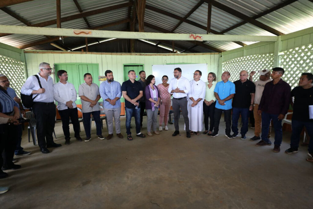 A comitiva do Ministério da Saúde visitou a moderna estrutura disponibilizada no Barco Hospital, um novo modelo de assistência para o contexto da Região Amazônica e que realiza, no momento, atendimentos na comunidade Bom Jesus do Puduari, a 63 quilômetros da zona urbana de Novo Airão (a 115 quilômetros de Manaus). O barco está ancorado na localidade, no entanto, alcança outras comunidades levando serviços em nove especialidades, além exames de imagem e laboratoriais, medicamentos e vacinação.