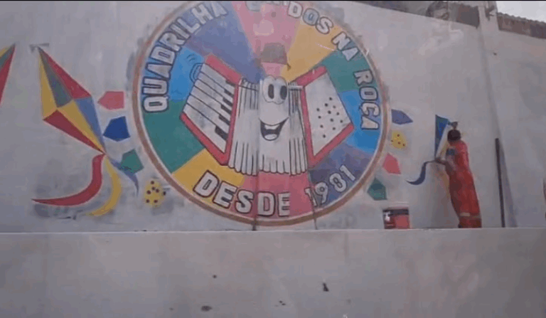 Conforme o vídeo, o que mais chama a atenção é que a pintura no muro, ao invés de ser um serviço de infraestrutura pública, se trata de divulgação e propaganda de um festival folclórico. No registro, os servidores aparecem em plena atividade, com uniforme e equipamentos que seriam destinados a obras e manutenção da cidade, mas aplicados em um espaço privado para fins comerciais ou de evento.